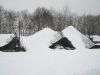 střechy. Sníh se sesunul až na blízkou cestu a zasypal její polovinu.